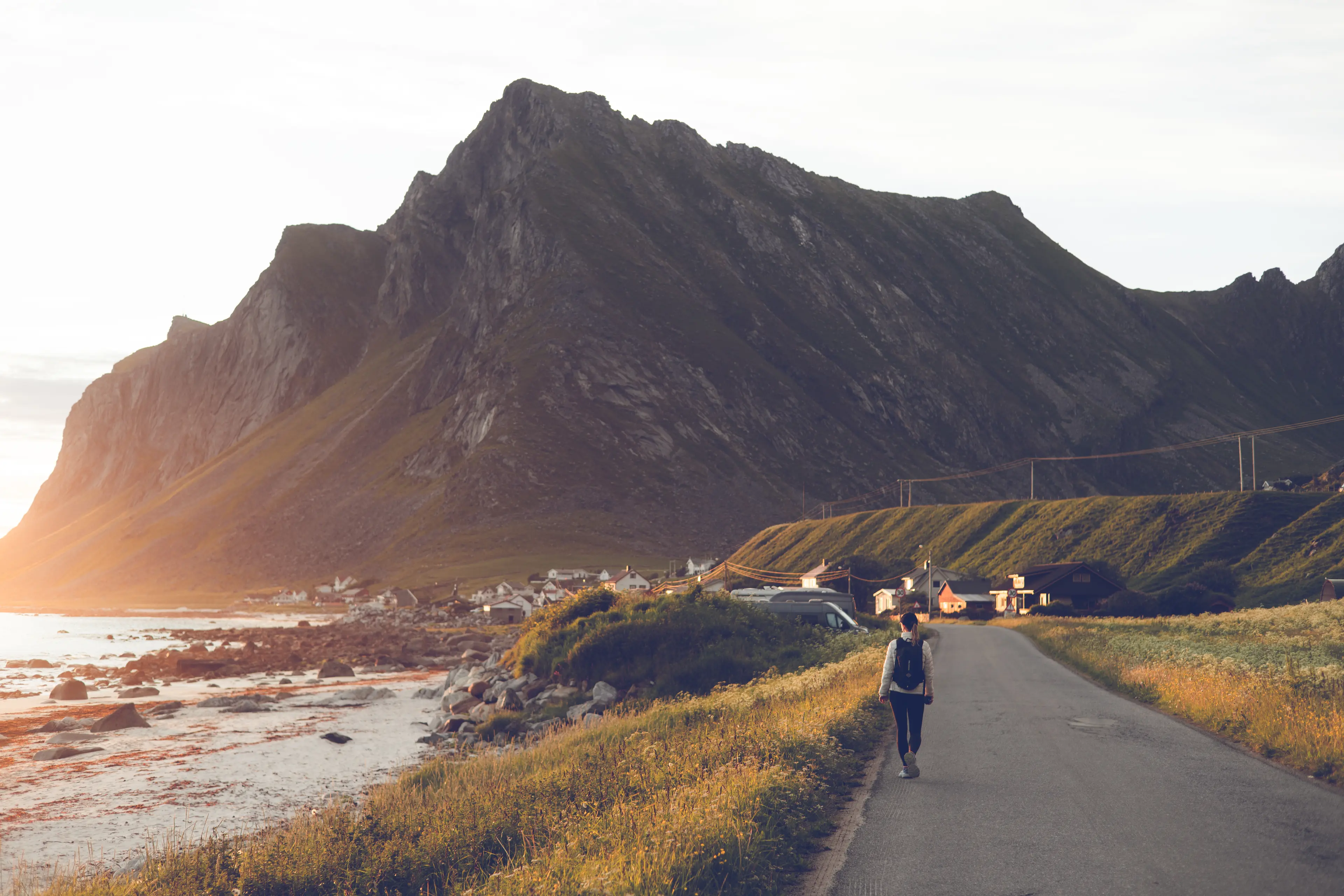 People get around Lofoten any way they can. In order of popularity, it seems RVs dominate - followed by smaller camper vans, followed by cars, followed by the local busses. For people driving around there are some proper hotel accommodations but most people camp either by tent or in their camper vans.